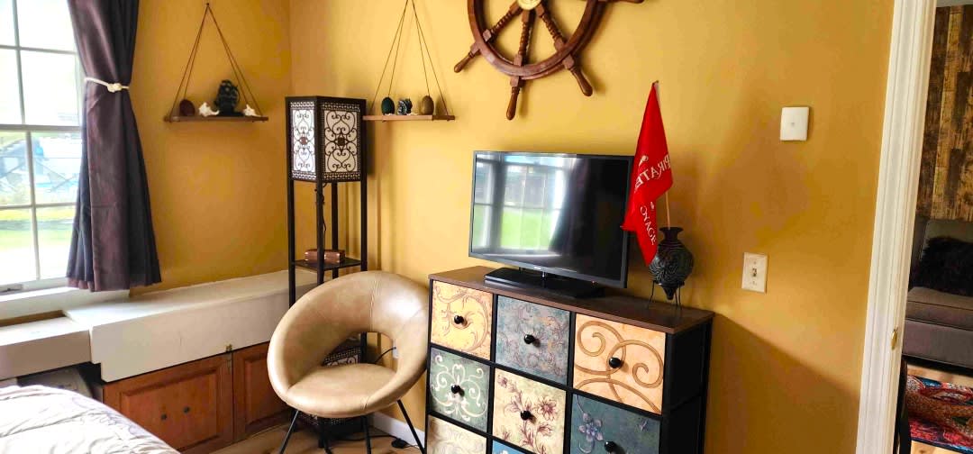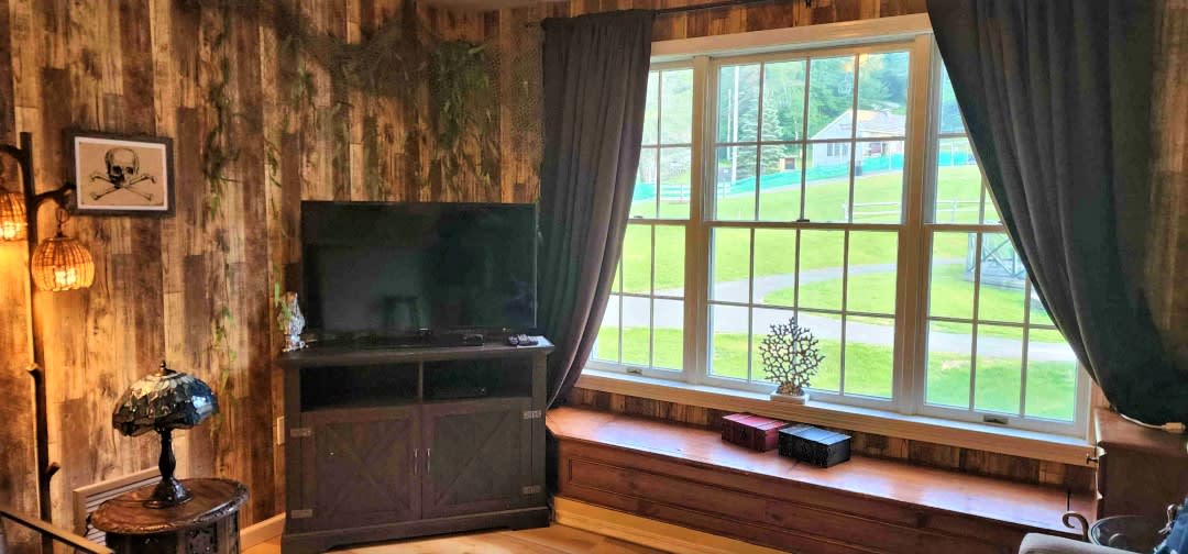 You want to pop out of bed, walk down hall, and be right on the mountain This 1BR 1 BA off lobby Unit has some of the best views in the Country Inn and all the High Seas. Truly unique with hardwood Floors, new Decor, and buried treasure, it boasts a king bed in the master bedroom, plus a fold out queen sofa bed in the living room. The kitchen comes complete with all your needs, incl Keurig, pots, pans, etc. The unit is equipped with board games, along with smart TVs. Pirate luxury.