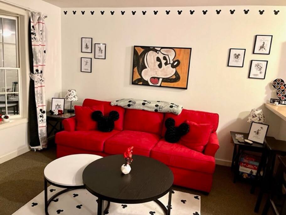 The most unique Suite in the Berkshires - This gorgeous Disney Themed Hotel Room will bring Mickey Magic to our summer retreat or Ski Getaway. No detail was missed in this adorable 1BR 1 BA Suite which Sleeps 4 comfortably with its King Bed and Pull out Queen Sofa in main room along with Kitchenette and Full Bath. Located in the BEST location At Jiminy - The Country Inn at the base of the mountain, you need to see this suite to believe it. Fully redone for instant Magic.