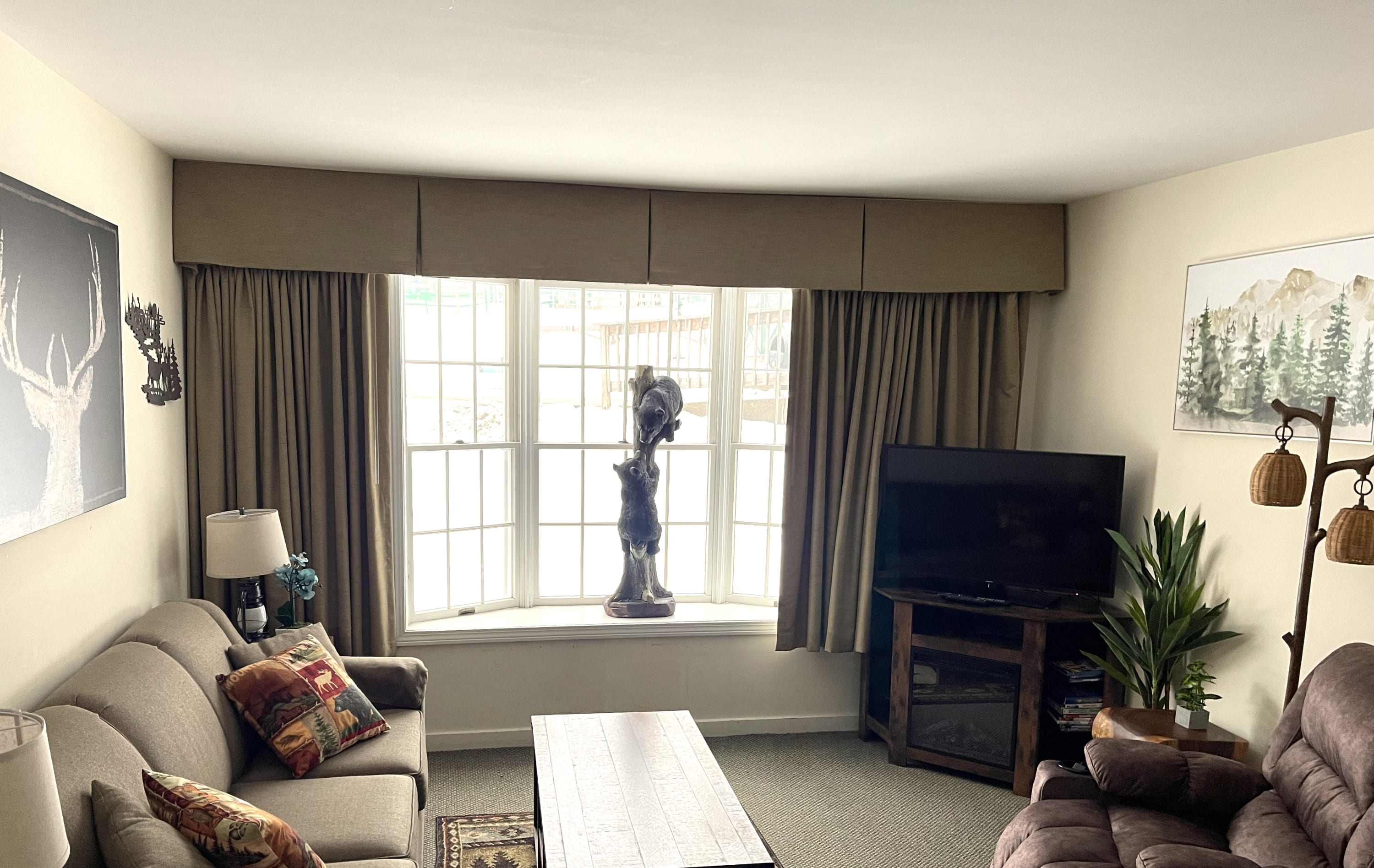 You want to pop out of bed, walk outside, and be right on the mountain - this is the place for you. This 1BR, 1BA Suite w Mountain Views features a king bed in the master bedroom that sleeps two, plus a second fold out queen sofa bed in the living room which sleeps an additional two. The Kitchenette comes complete with Keurig, Toaster, pots, pans, and more. The unit is equipped with games for those nights in, along w two TVs. As a guest, you have full use of all of Jiminy and the Inn, including yr round heated pool hot tub sauna, fitness center and more All of our deluxe rental suites, apartments, and condos are very different from the standard ones offered by mountain owners. Our accommodations are fully redone, privately cleaned, and all are RIGHT ON THE MOUNTAIN! Instead of dated lodgings, experience new furnishings, in-suite perks such as Keurig machines, air fryers, board games, plentiful soft premium beddings, and of course one-of-a-kind themed getaways. Love yetis? Yearning for Disney magic? Longing for a spa getaway? You will not see any suites like these - anywhere! During your stay you will enjoy all the amenities the Country Inn and Jiminy Peak have to offer, including a year round outdoor heated pool, hot tubs, fitness center and more. Jiminy Peak is the ultimate all season rental vacation resort. Summer offers great hiking and the famous Jiminy Mountain Resort Adventure Park, complete with alpine slide, mountain coaster, trampoline park, ropes course, soaring eagle and more! Winter offers the best skiing in the tri-state area, from beginners to experts. An on site ski school, mid-difficulty BLUE-GREEN and BLUE BLACK slopes, firepits, resort restaurant and bar, and night skiing are just some of the excitement Jiminy Peak Mountain Resort offers. Jiminy uses 100% renewable energy to run its snow making, allowing for expansive skiing regardless of attendance or weather. We are owners as well as guests, so every place is meticulously cared for to earn your five star review. Our properties consistently have the best ratings on all the booking channels. We promise you will LOVE your stay! Howie at JiminyRentals